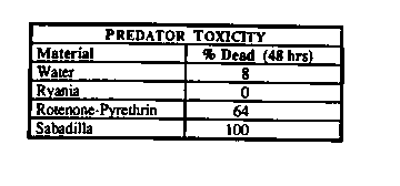 Results: Ryania does not seem to be toxic to T. pyre The rotenone-pyrethrin mixture was moderately toxic. Sabadilla was extremely toxic to this predatory mite
