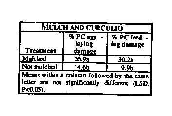 In one surprising result, significantly more plum curculio oviposition and feeding damage was found in the mulched blocks than the non-mulched blocks. Reasons for this are unknown.